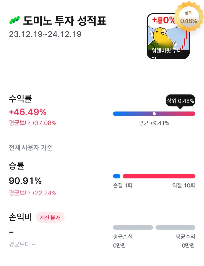 손실을 지나 이익을 경험하는 것. 좋은 경험을 비교적 어린 나이에 할 수 있음에 감사한다.